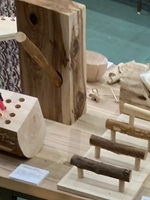 | 私は名古屋芸術大学において木工技術職員として木工の技術指導もしております。主にスペースデザインの学生に教えています。デザインに関しては見識の高い教授陣の指導を受けるのですが、実際に作るとなるとできないことが多いので、機械のつかい方や、加工方法、加工順序など製造におけるさまざまな事を手取り足取り教えています。ここでは授業の課題として製作されたものを紹介していきます。大学の工房見学もできますので、興味のある方は森工房か名古屋芸術大学までお問い合わせください。 |